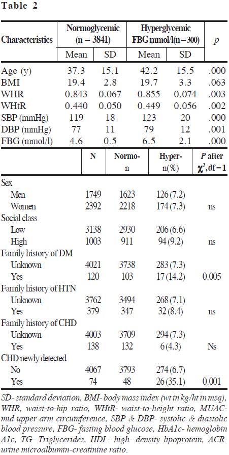 Table 2: Comparison of characteristics between normoglycemic and hyperglycemic (FBG < 5.6 v. ³ 5.6 mmol/l) subjects