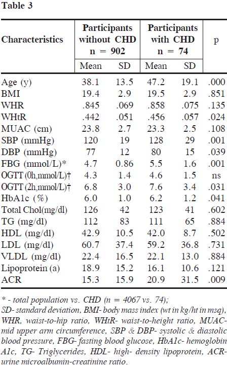 Table 3: Comparison of characteristics between subjects with and without coronary heart disease (CHD)