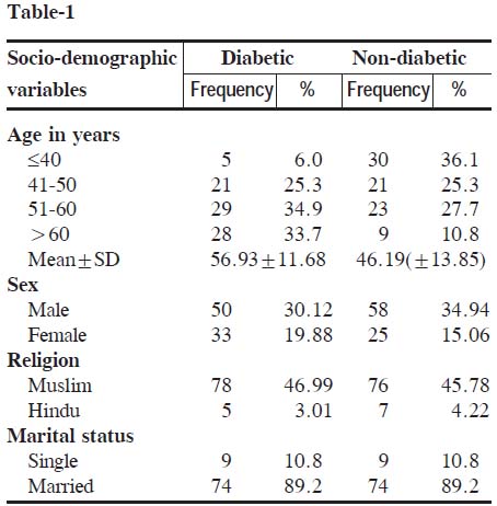 Table-1: Socio-demographic variables between diabetic and non-diabetic patients