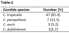 Table-2: Types of NAC species isolated from study population (n=58)