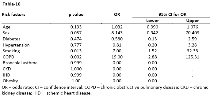 Table-10: Univariate logistic regression analysis showing impact of risk factors on outcome (death/referral)