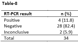 Data collection and investigations: The data were collected in a pre-designed semi-structured questionnaire that included demographic, epidemiological, clinical and laboratory parameters. All investigations were conducted on the day of admission or the within one day after admission and were recorded. The repeat RT-PCR was performed 10 days after the first positive RT-PCR test. The patients were examined daily and as needed. All data were entered into the SPSS data sheet.