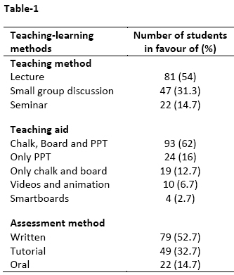 Table-1: Students’ preference of teaching-learning and assessment methods