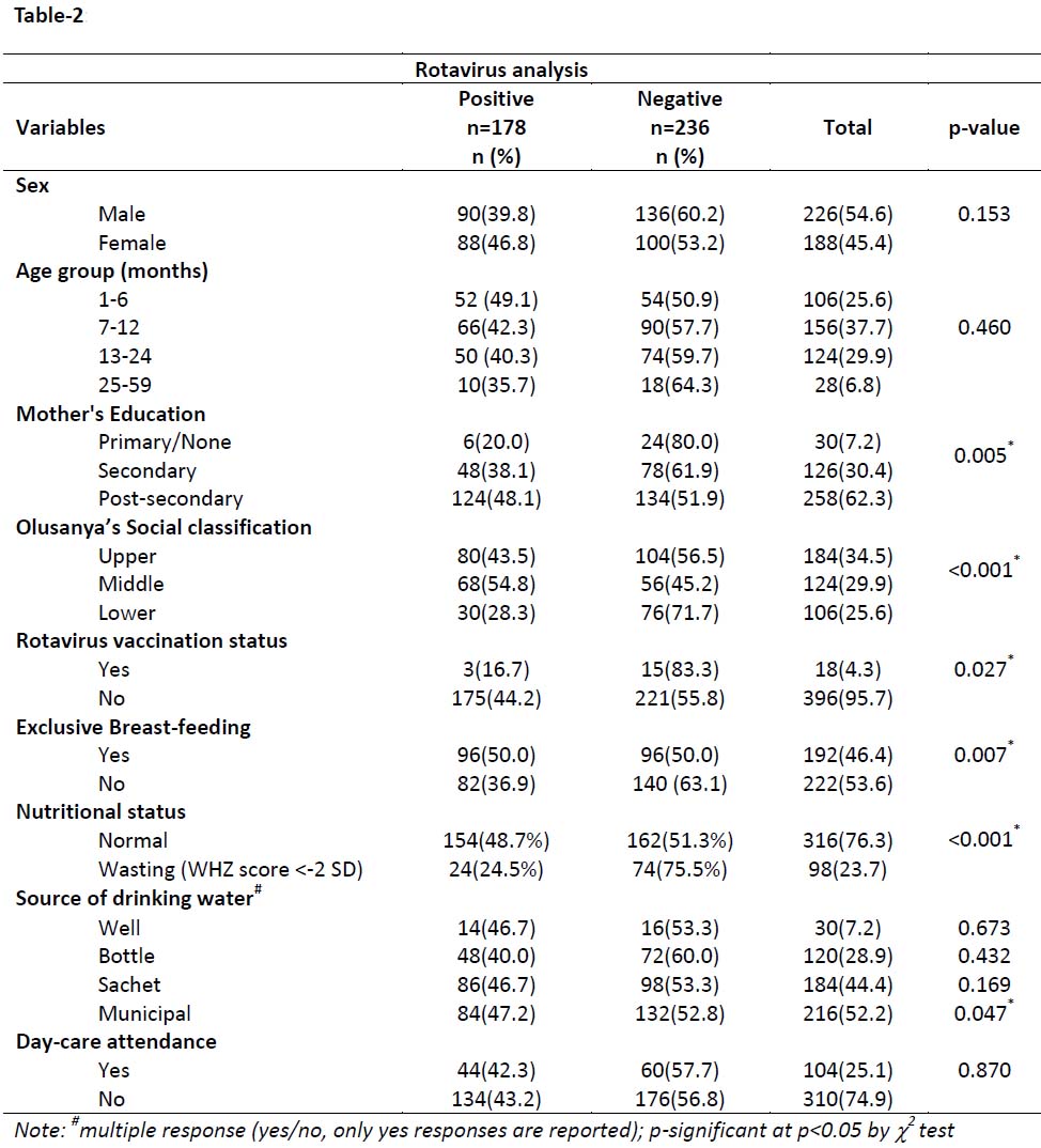 Table-2: Socio-demographic factors associated with rotavirus infection in children with acute diarrhea