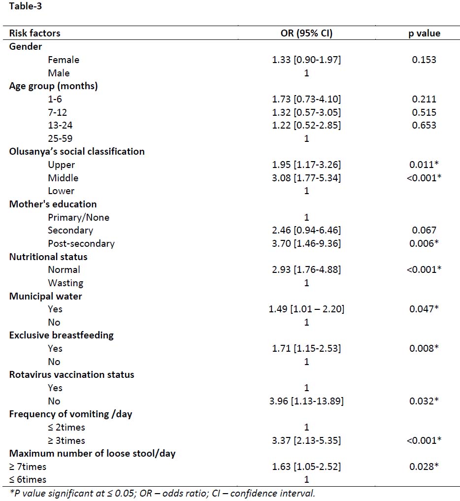 Table-3: Odds ratios of factors associated with rotavirus infection among children with acute diarrhoea