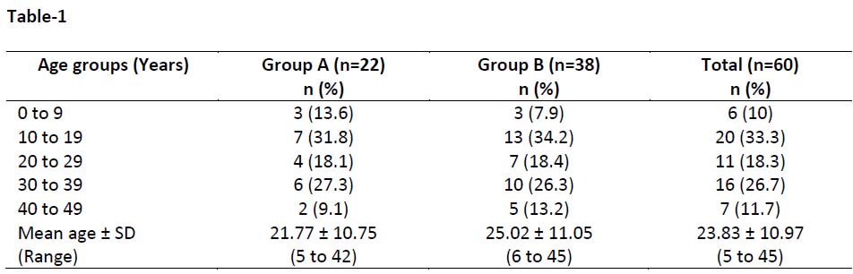 Table-1: Age distribution of study patients (n=60)