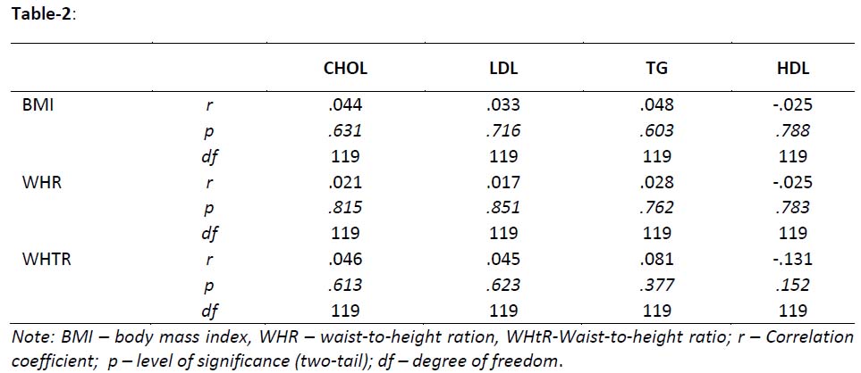 Table-2: Correlations (controlling for age and sex) between obesity and lipids related variables
