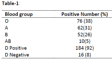 Table-1: Distribution of ABO and Rh blood groups of the study population (N=200)