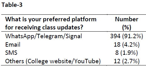 Table-3: Preferred platform for receiving class updates