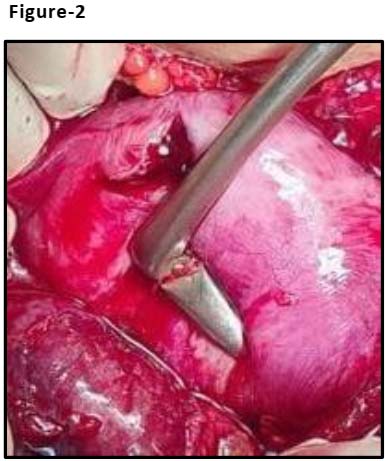 Figure-1: Intra-operative image showing a bulging in the previous uterine scar indicating cesarean section scar ectopic pregnancy.