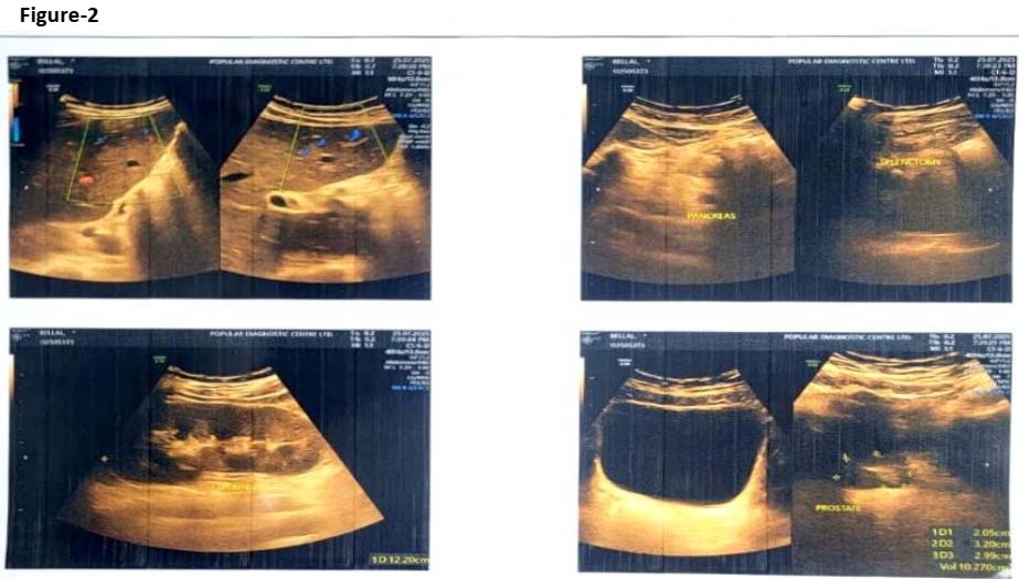 Figure-2: Ultrasonography of abdomen showing presence of multiple micro-abscesses in the liver