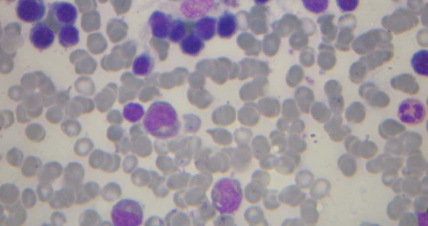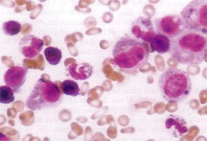 Fig-2: Photomicrograph of bone marrow smear after successful ailogenic bone marrow transplantation. There is no evidence of’ elliptocytosis in red blood cells and no giant granules in mycloid precursors or polymorphs. (Wright-Giemsa stain)