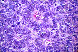Fig-4. Perivascular pseudo rosettes (40X, hematoxyllin and eosin stain)