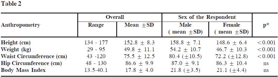 Table 2: Anthropometric indicators of the senior citizens by sex (n = 317)