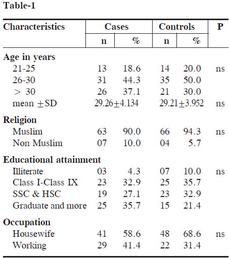 Table-1: Distribution of socio-demographic variables between cases and controls