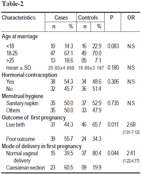 Table-2: Distribution of reproductive characteristics between cases and controls