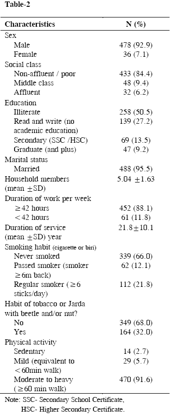 Table-2: Socio-demographic characteristics of participants (n = 514)