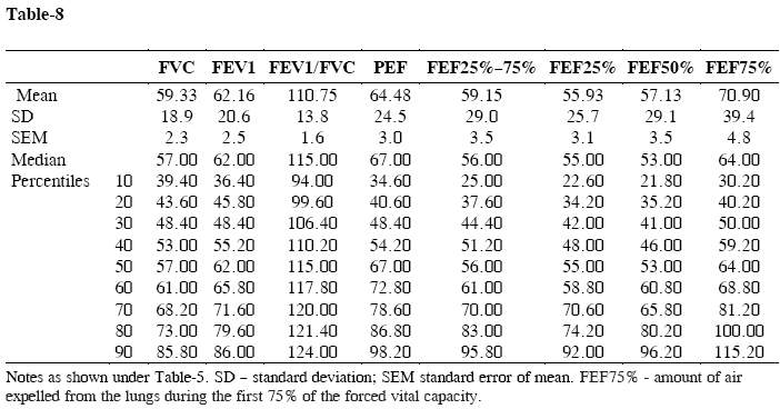 Table-8: Detail descriptive statistics of spirometry (n = 67)